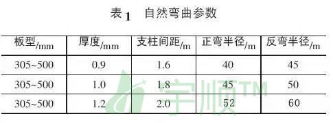 彎弧板自然彎曲參數(shù),見表1。